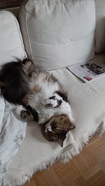 Danach wird sich geschleckt und eine bequeme Position auf dem Sofa eingenommen bis die nächste Mahlzeit serviert wird.